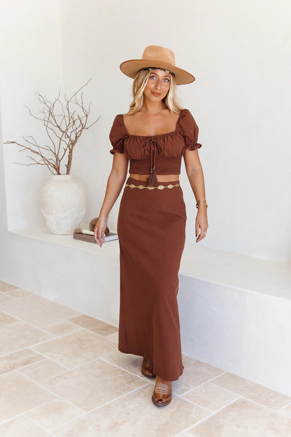 Say hello to your new favourite statement piece. This carved metal waistband in a vintage gold finish brings an effortlessly dreamy touch to any look. Whether you're styling it over a flowy maxi or cinching your favourite skirt, it adds instant charm and boho elegance.
