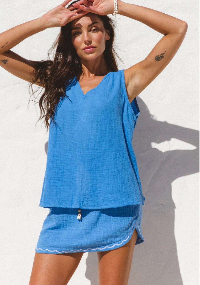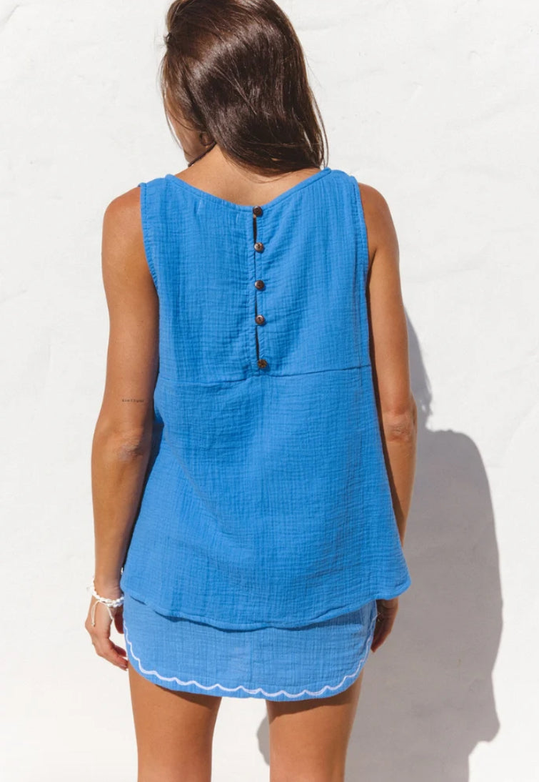 The Vespa Tank by Cabo combines ocean hues with ultra-soft cotton for all-day comfort. Its flattering vee neck and relaxed fit make it effortlessly stylish, while the unique coconut buttons at the back add a distinctive touch. Elevate your casual wardrobe with this versatile tank that feels as good as it looks.