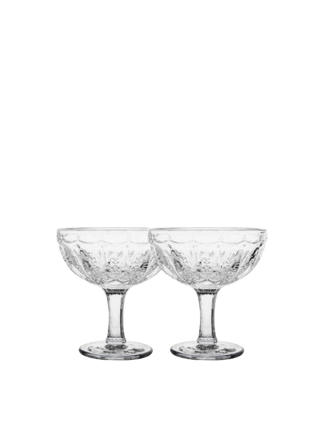 Our stunning Margi glass set of two are made from a durable, thick glass that features a beautiful embossed design, available in three colours. A bold and fun addition to your next happy hour!